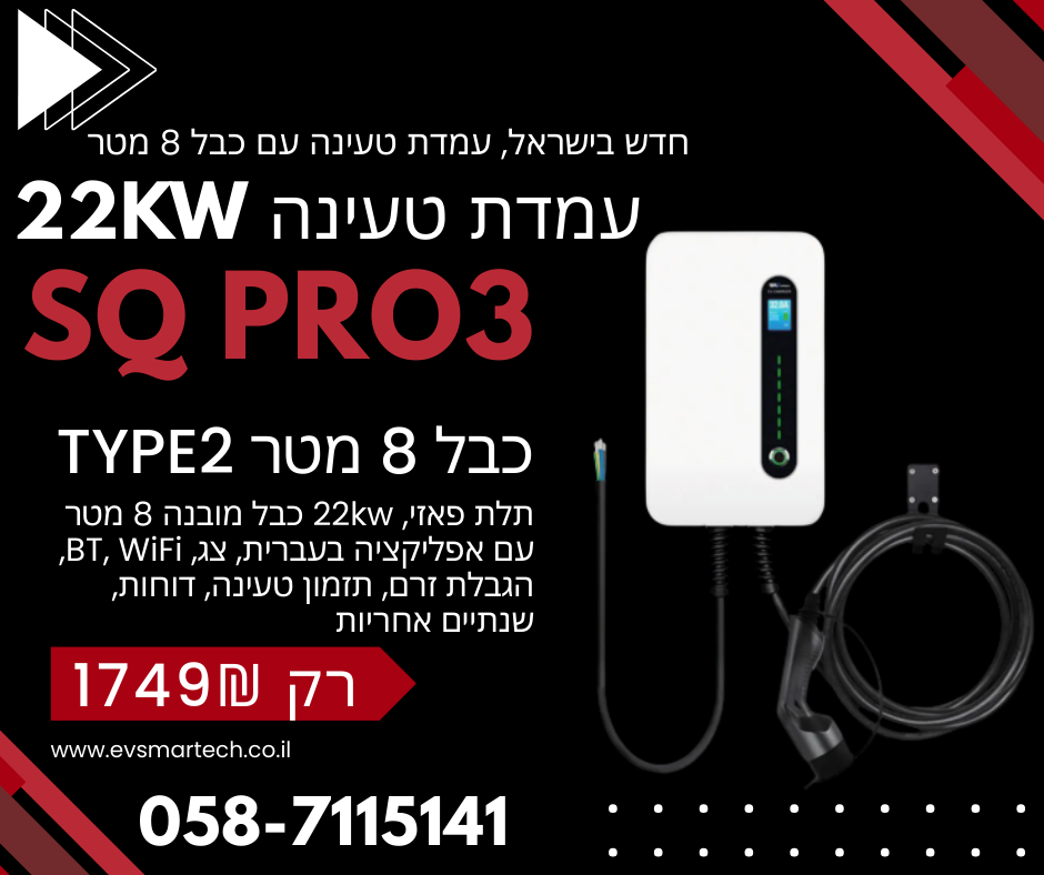 #עמדת טעינה ביתית, #עמדת טעינה לרכב חשמלי, #עמדת טעינה תלת פאזי, #עמדת טעינה חד פאזי, #עמדת טעינה 22kw, #עמדת טעינה עם אפליקציה בעברית, #עמדת טעינה עמידה מים, #עמדת טעינה אוניברסלית