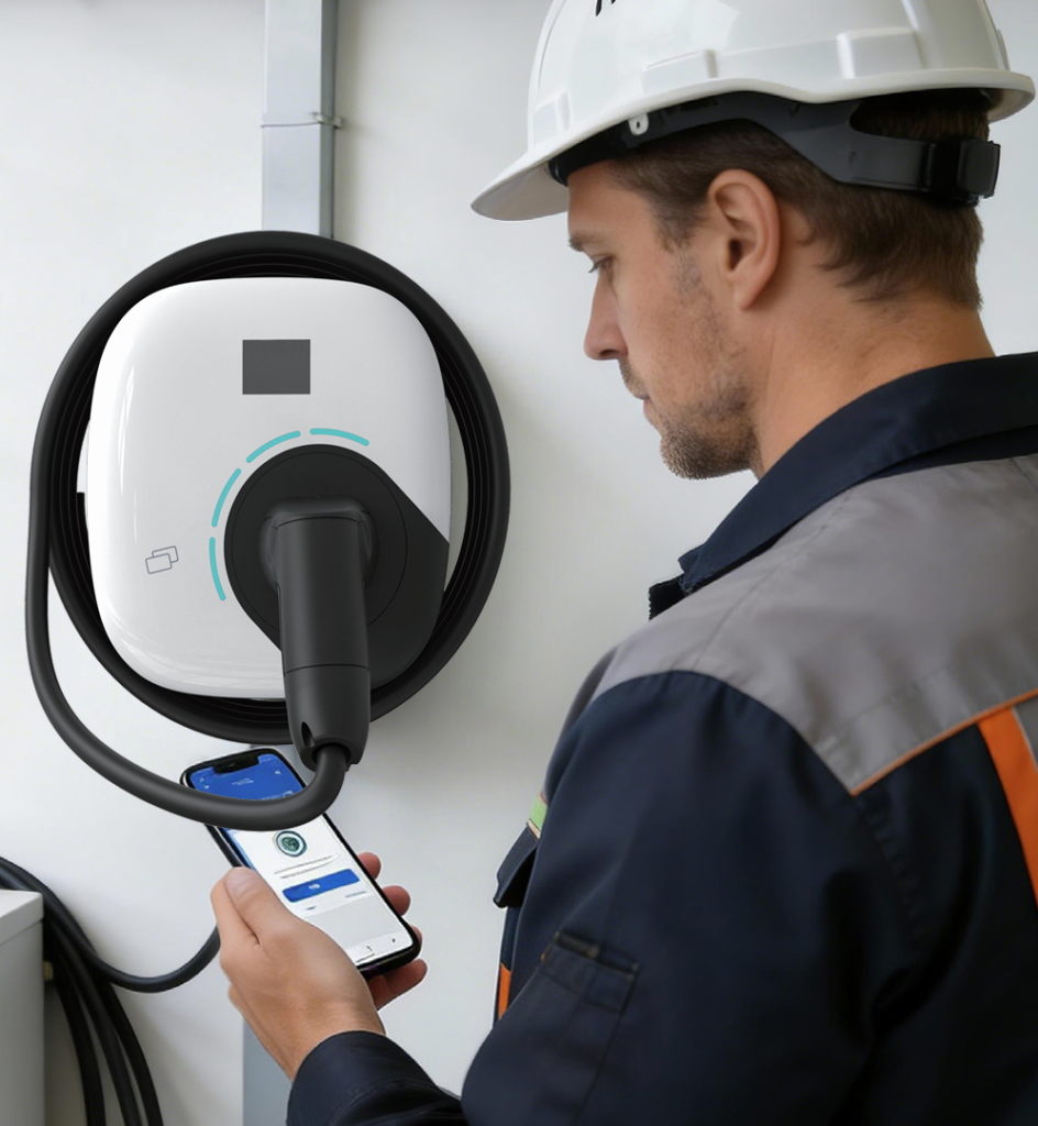 הספק הטעינה מפאזה אחת 7.4kw הספק טעינה מכל הפאזות עד 22kw, עמדת טעינה עם 3 מצבי תפעול: אפליקציה, RFID, Plug & Charge